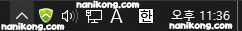 아마 대부분의 경우 nProtect Online Security가 설치가 되어있을 것입니다. 인터넷을 통해 업무 관련 사이트를 이용하거나 은행 사이트 등을 이용하는 경우에 이 프로그램이 설치되기 때문입니다. 먼저 작업표시줄의 시스템 트레이를 확인하여 화면 캡처 관련 보안 프로그램 등을 확인합니다. 그러면 연두색과 주황색 등의 방패 모양 아이콘을 확인될 것입니다.