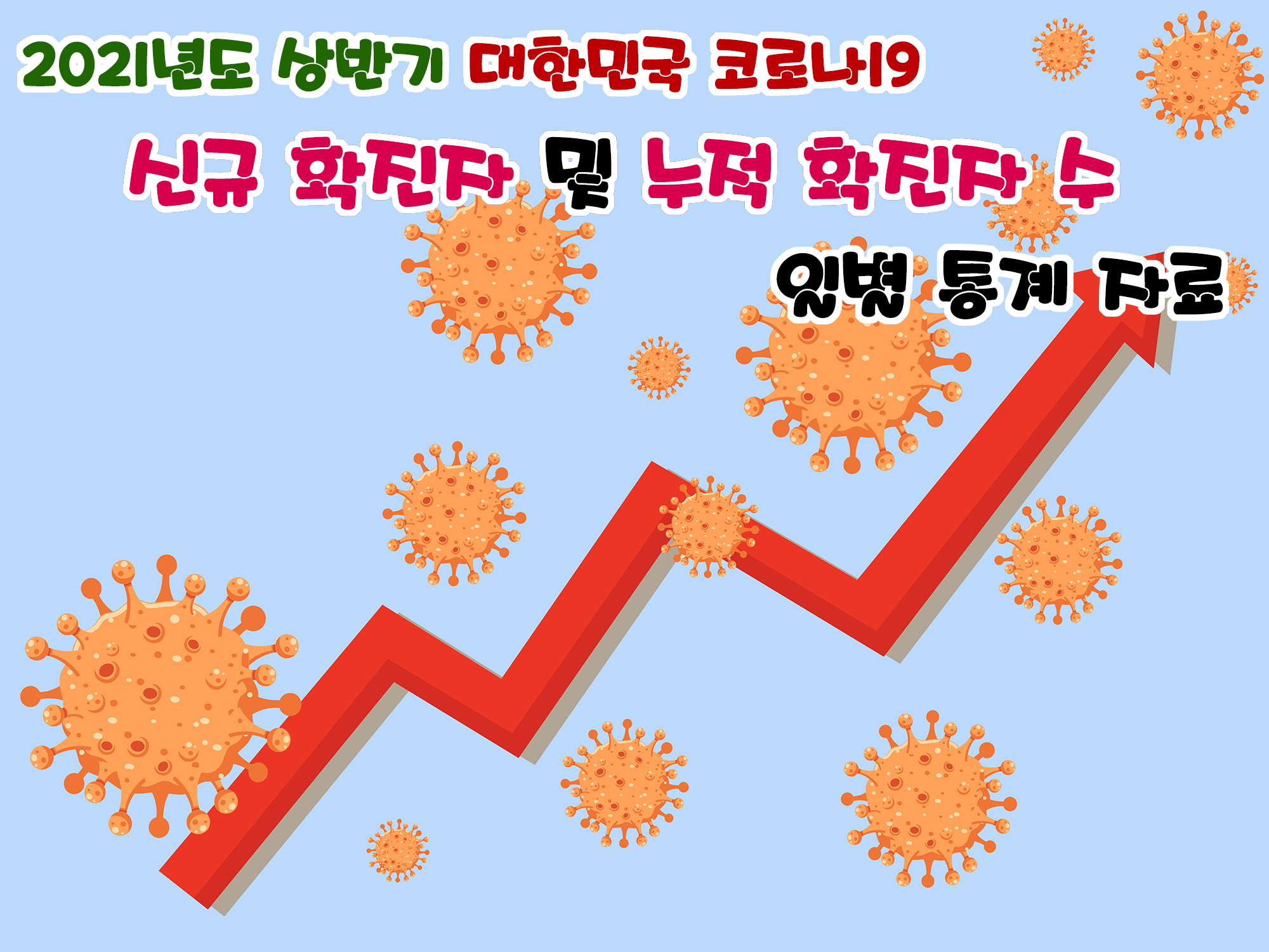 코로나19 누적 확진자 수가 2000만 명을 돌파하면서 처음 확진이 생긴 후로 지금까지 일별로 어떻게 늘어났나 알아보다 보니 그래프로만 확인할 수가 있었고 한 번에 정리된 자료가 없다 보니 직접 포스팅을 하게 되었습니다. 지난 포스팅까지 2020년도 코로나19 신규 확진자 수와 누적 확진자 수를 일자별로 정리하며 알아보았습니다. 그럼 오늘은 지난 포스팅에 이어서 2021년도 상반기, 1월부터 6월까지의 코로나19 신규 확진자 수와 누적 확진자 수를 일별로 정리해보도록 하겠습니다.