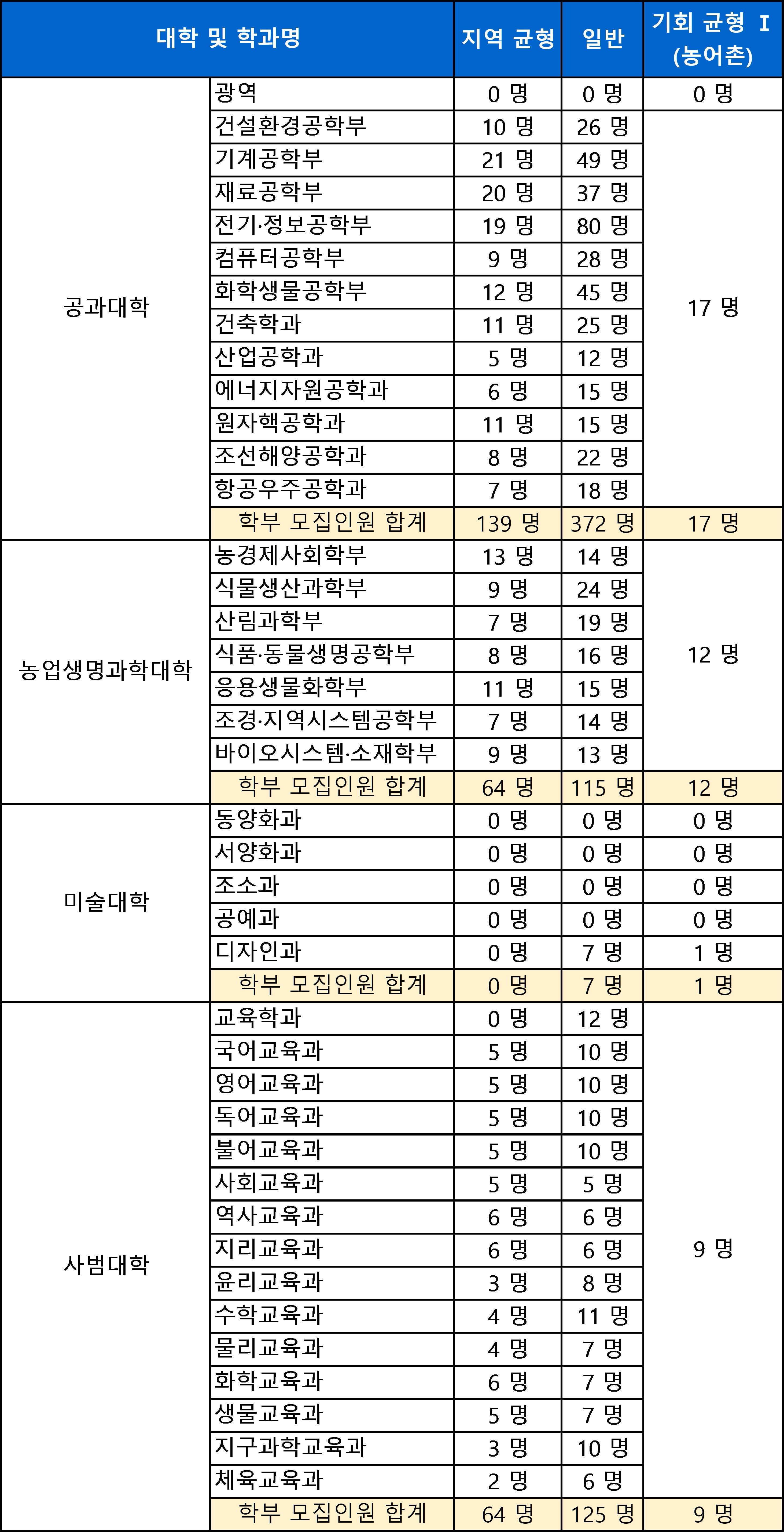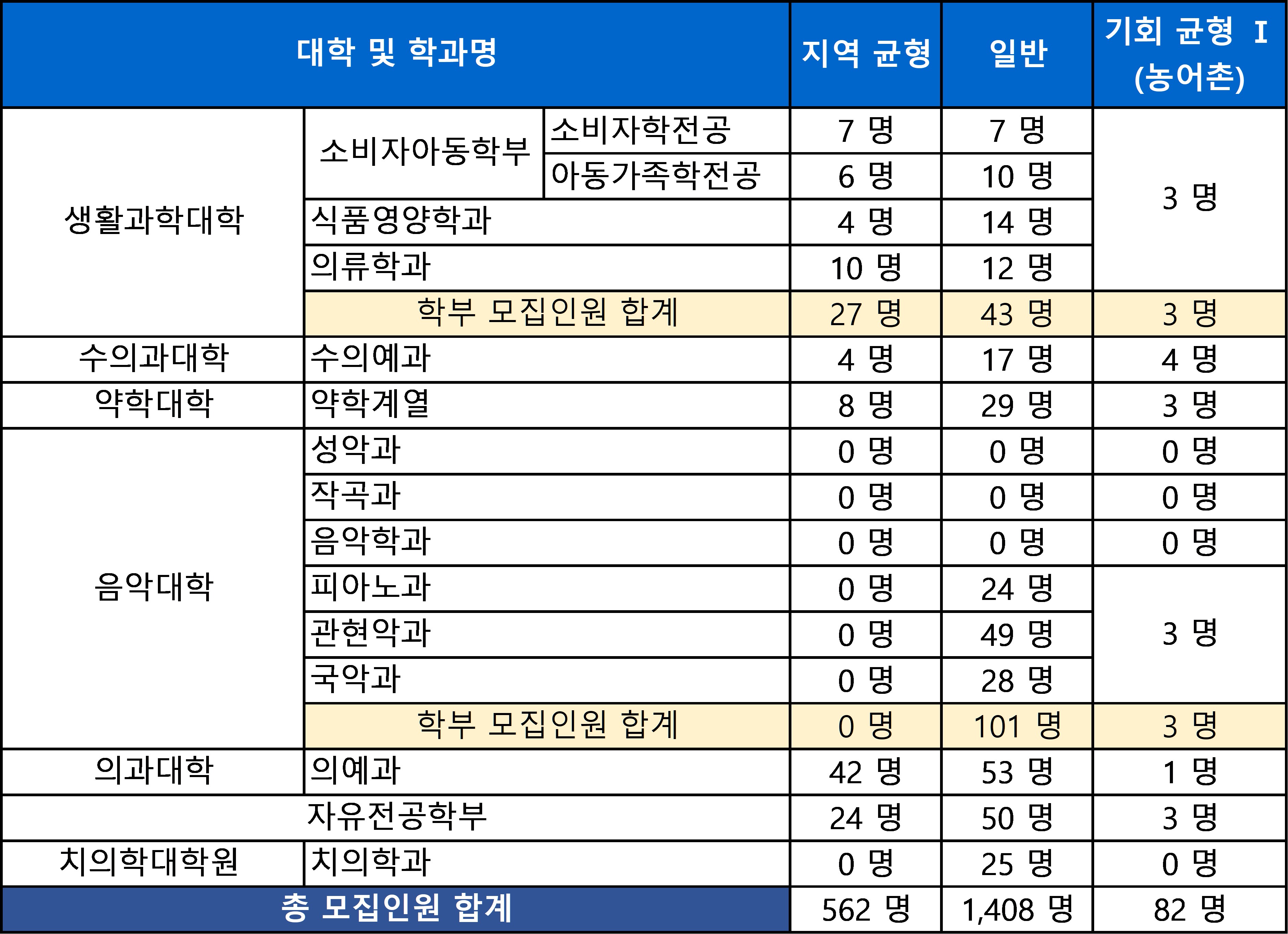 | 기회 균형 특별 전형 Ⅰ (농생명 계열 고교 졸업예정자 - 농업생명과학대학) |